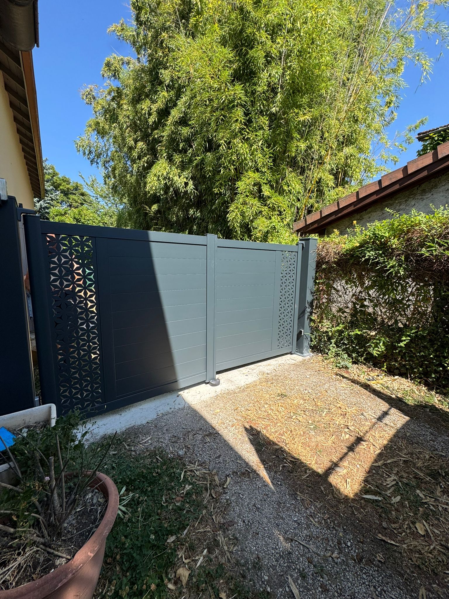 Portail coulissant électrique design avec clôture assortie- Grenoble